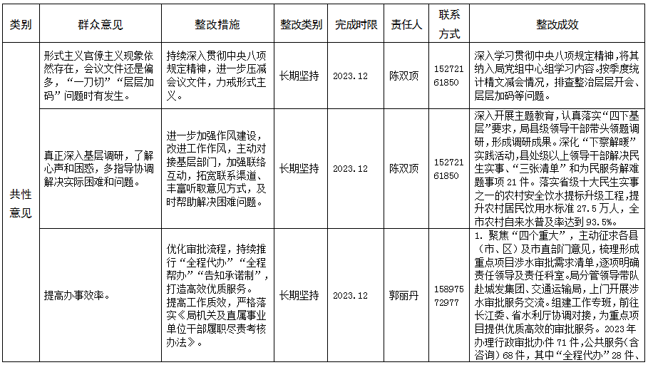 宜昌市水利和湖泊局2022年度群众意见整改落实情况