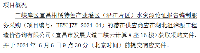 三峡库区宜昌柑橘特色产业灌区(沿江片区)水资源论证报告编制服务竞争性磋商公告