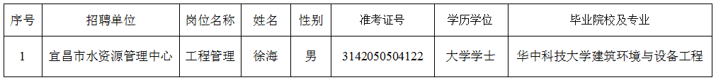 宜昌市水利和湖泊局所属事业单位2024年统一公开招聘工作人员拟聘人员名单公示