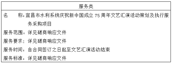 二、项目名称:宜昌市水利系统庆祝新中国成立75周年文艺汇演活动策划及执行服务采购项目