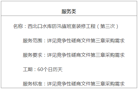 西北口水库防汛值班室装修工程(第三次)成交结果公告