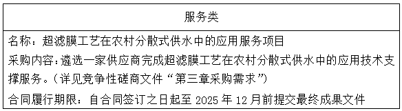 超滤膜工艺在农村分散式供水中的应用服务项目成交结果公告