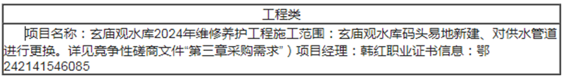 玄庙观水库2024年维修养护工程中标(成交)结果公告
