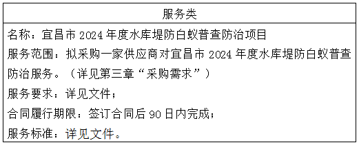 二、项目名称:宜昌市2024年度水库堤防白蚁普查防治项目