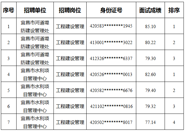 根据《宜昌市2025年“招才兴业”事业单位人才引进招聘公告·南京大学站》,现将宜昌市水利和湖泊局所属事业单位2025年“招才兴业”事业单位人才引进·南京大学站面试成绩予以公告。