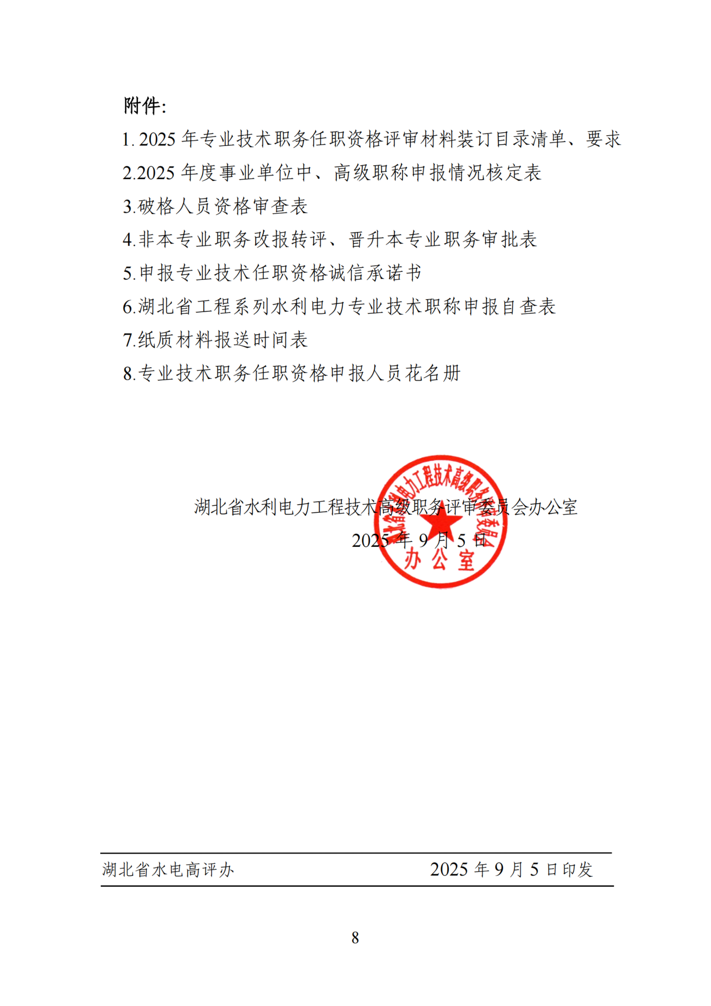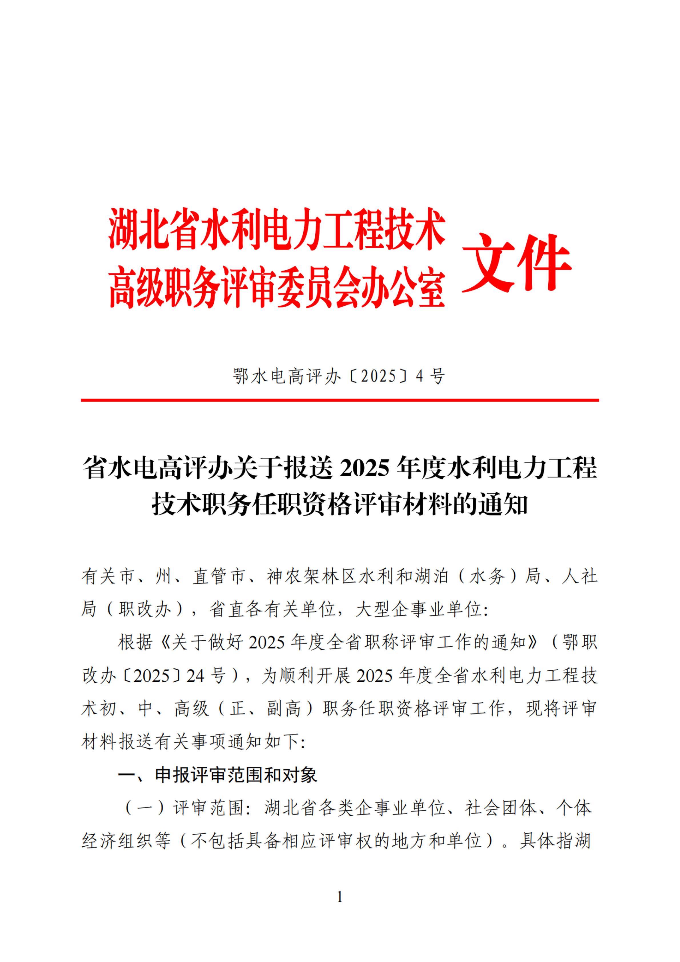 省水电高评办关于报送2025年度水利电力工程技术职务任职资格评审材料的通知