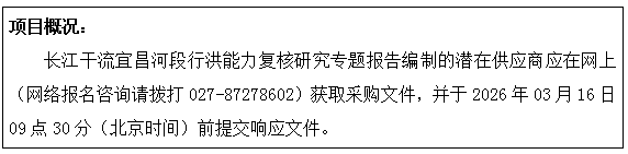 长江干流宜昌河段行洪能力复核研究专题报告编制竞争性磋商公告