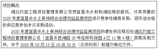 2025年度宜昌市水土保持综合治理效益监测项目竞争性磋商公告