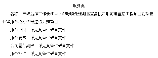 二、项目名称:三峡后续工作长江中下游影响处理湖北宜昌段四期河道整治工程项目勘察设计等服务招标代理遴选
