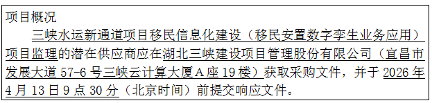 三峡水运新通道项目移民信息化建设(移民安置数字孪生业务应用)项目监理竞争性磋商公告