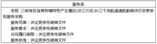 二、项目名称:三峡库区宜昌柑橘特色产业灌区(沿江片区)长江干流航道通航影响评价变更审批服务采购